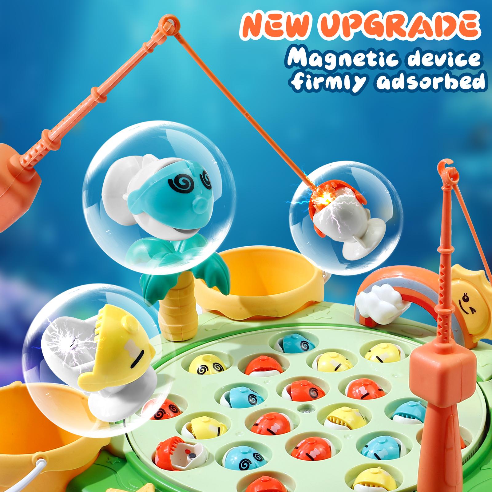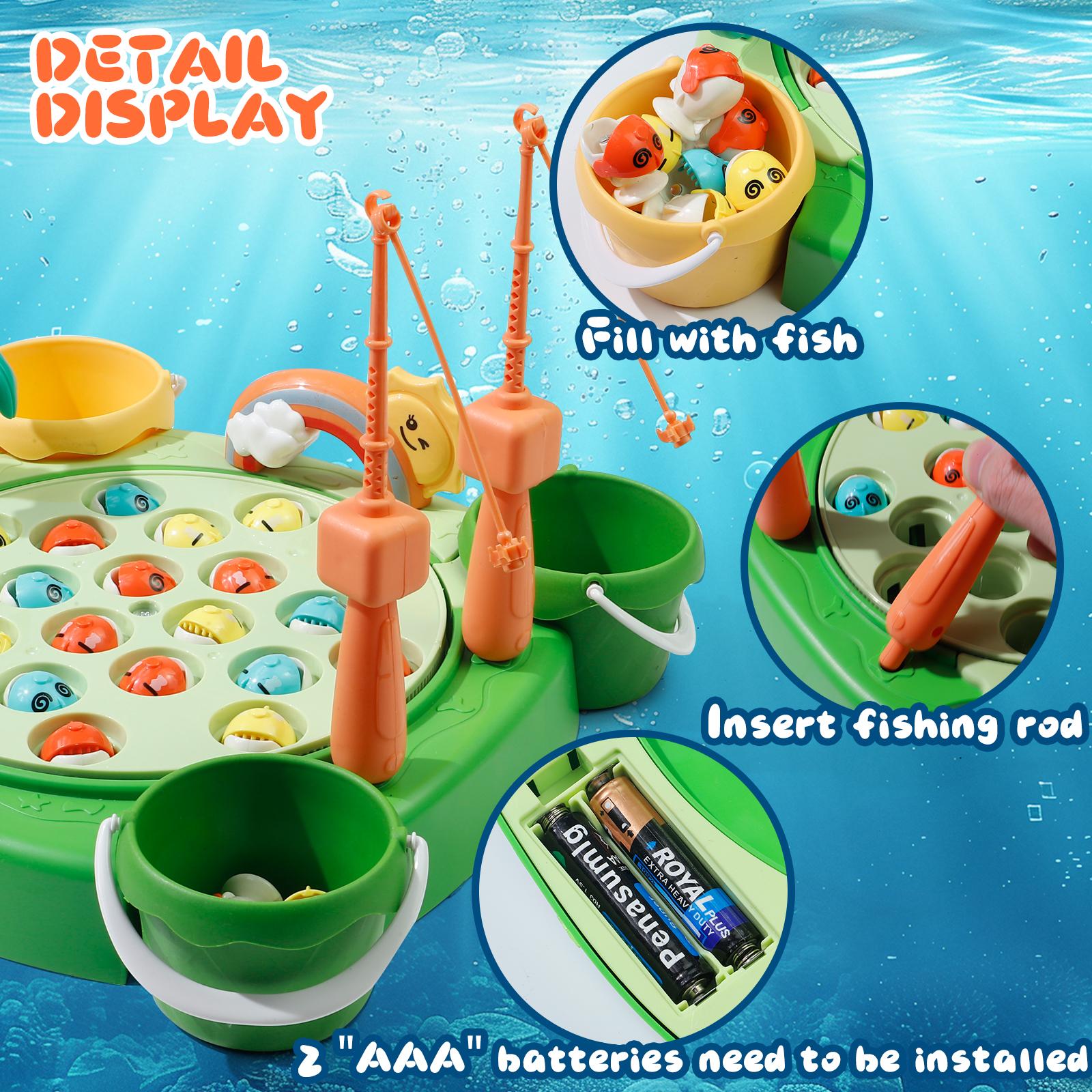 Fishing Game for Toddlers - 28 Fish, 4 Rods, 4 Buckets, Rotating Board with Music, Educational Fine Motor Skills Fishing Toy for Boys and Girls