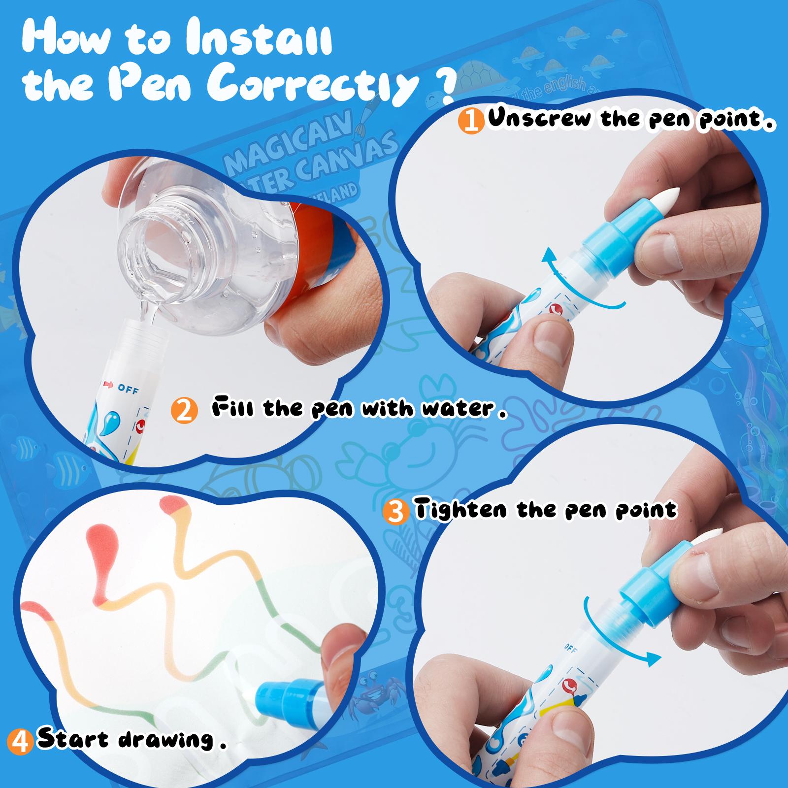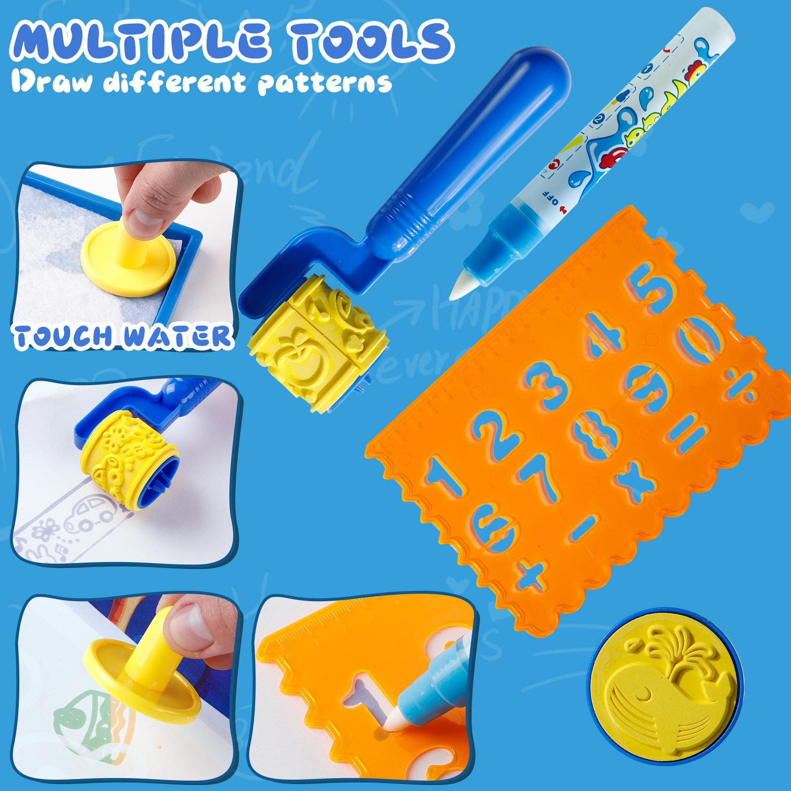 - Mess-Free Fun: Simply fill the included magic pens with water and watch as your child draws vibrant colors and patterns that fade away as the water dries, allowing for endless creativity without any mess.