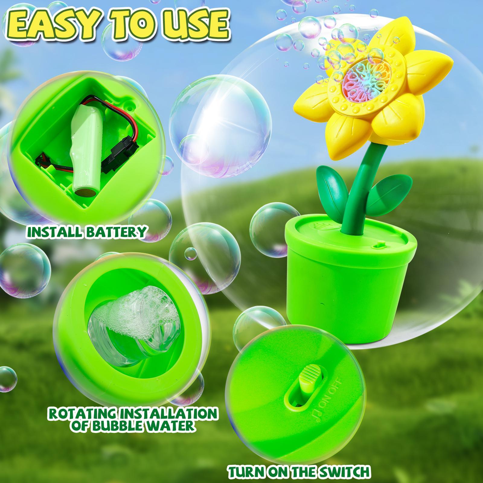 • Adorable Sunflower Shape: Featuring a bright, cheerful sunflower design, this bubble maker adds a playful touch that kids will love and enjoy during playtime.